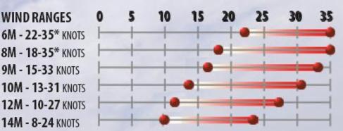 Für die optimale Zusammenstellung der Kite Range ist der Nemesis NXG 2010 in folgenden Größen erhältlich. Aufgrund einer optimalen Zusammenstellung von dem zum ridergweicht passenden kite wurde in die reguläre 2m² - Abstufung ein 9m² Nemesis NXg eingefügt.